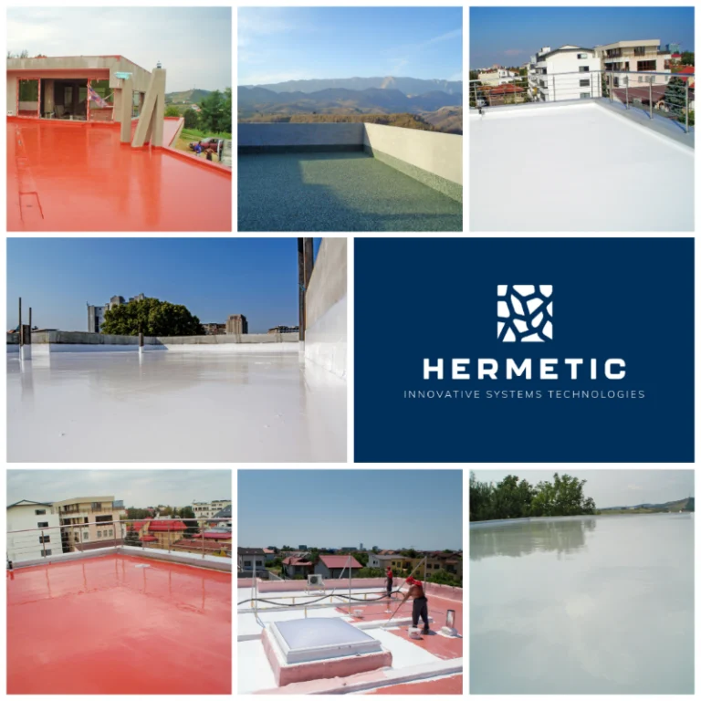 - Aplicarea sistemului Hermetic HBT – aplicare strat amorsa, specifica stratului suport, aplicare trei straturi membrana poliuretanica lichida, tratament specific in zonele critice scurgeri, colturi si imbinari.