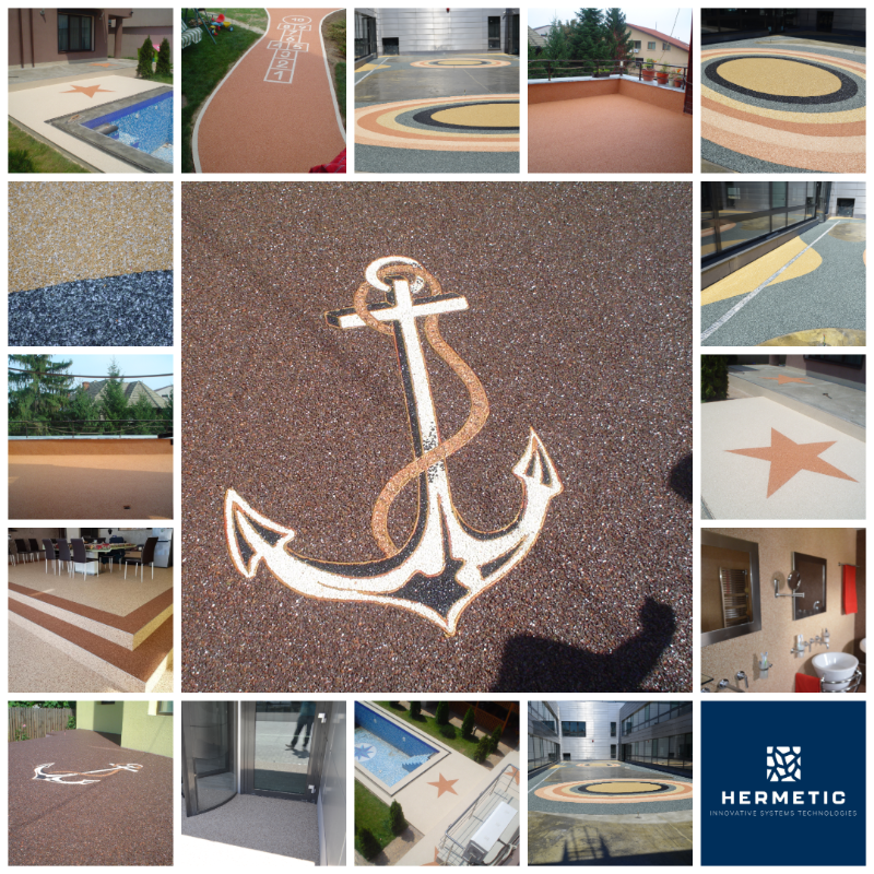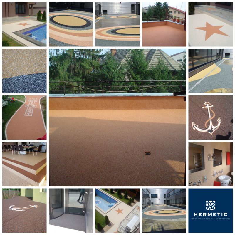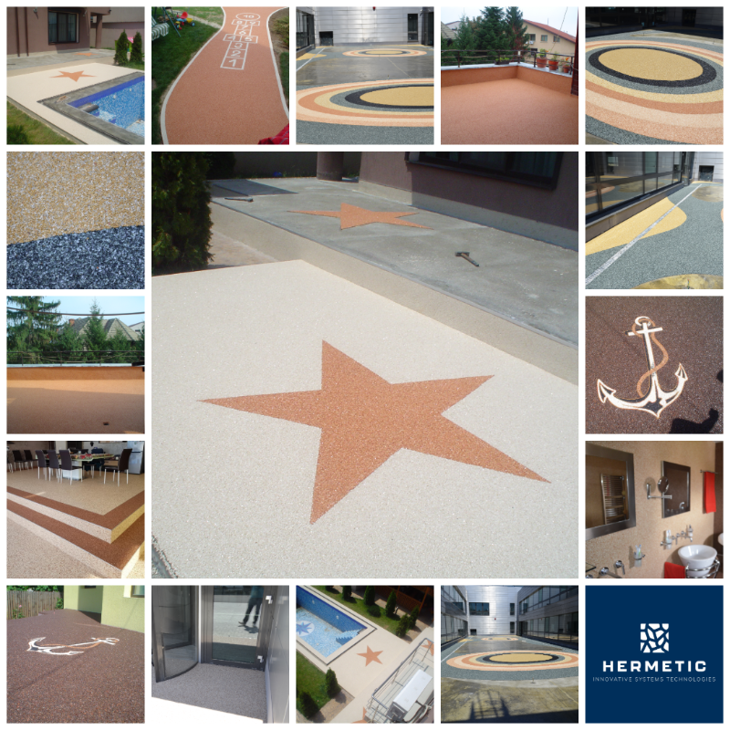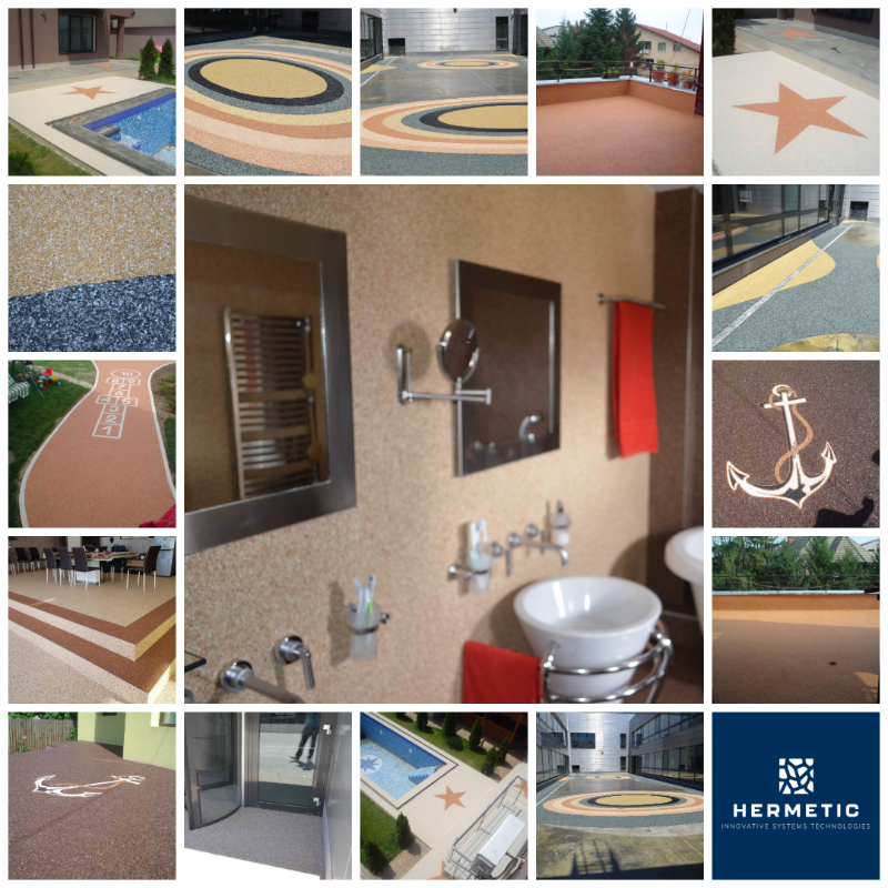 Sistem de finisaj obtinut prin mixarea granulelor de piatra natural cu rasina transparenta, elastica, special conceputa, reprezinta o alternativa durabila si moderna, pentru realizarea unui design inovativ si unic, in cazul placarilor suprafetelor orizontale cat si verticale. Așadar este conceput atat pentru aplicari exterioare cat si interioare.