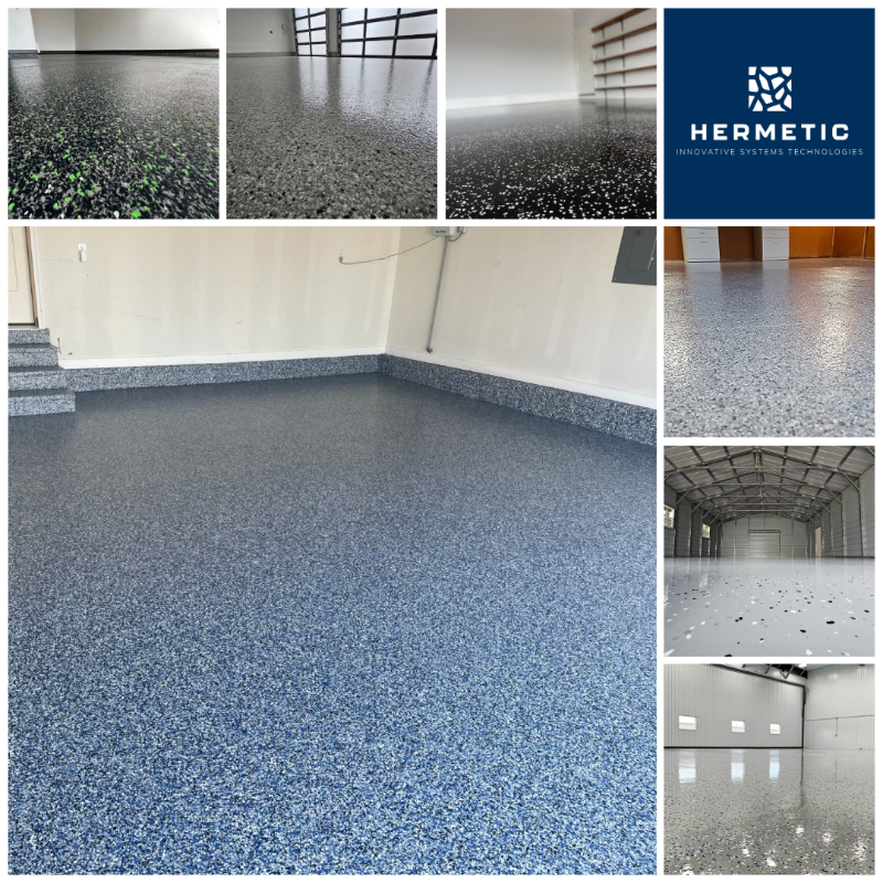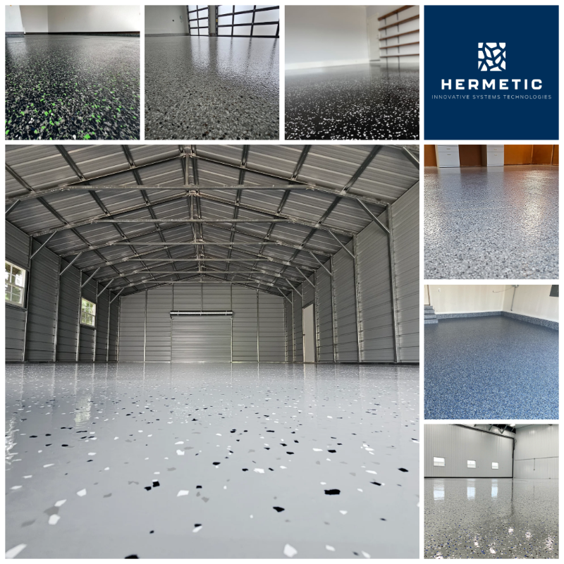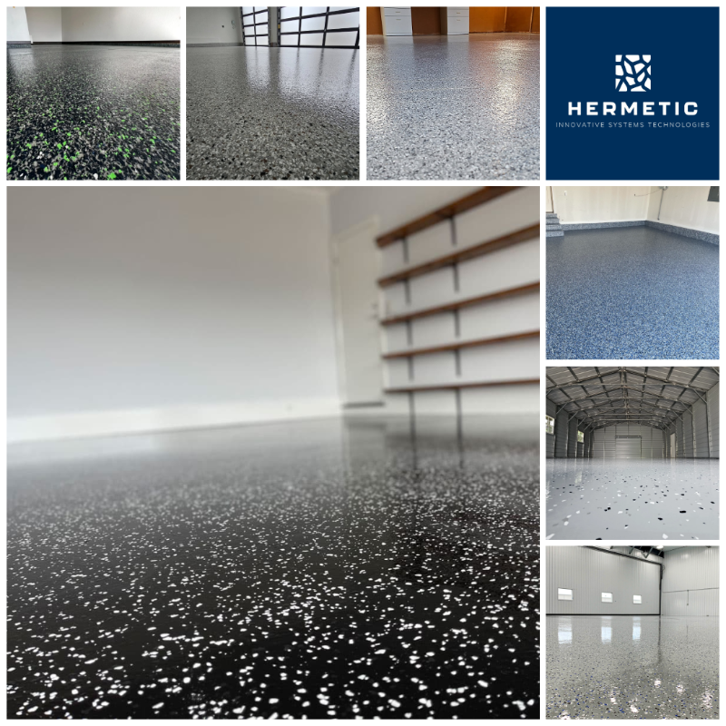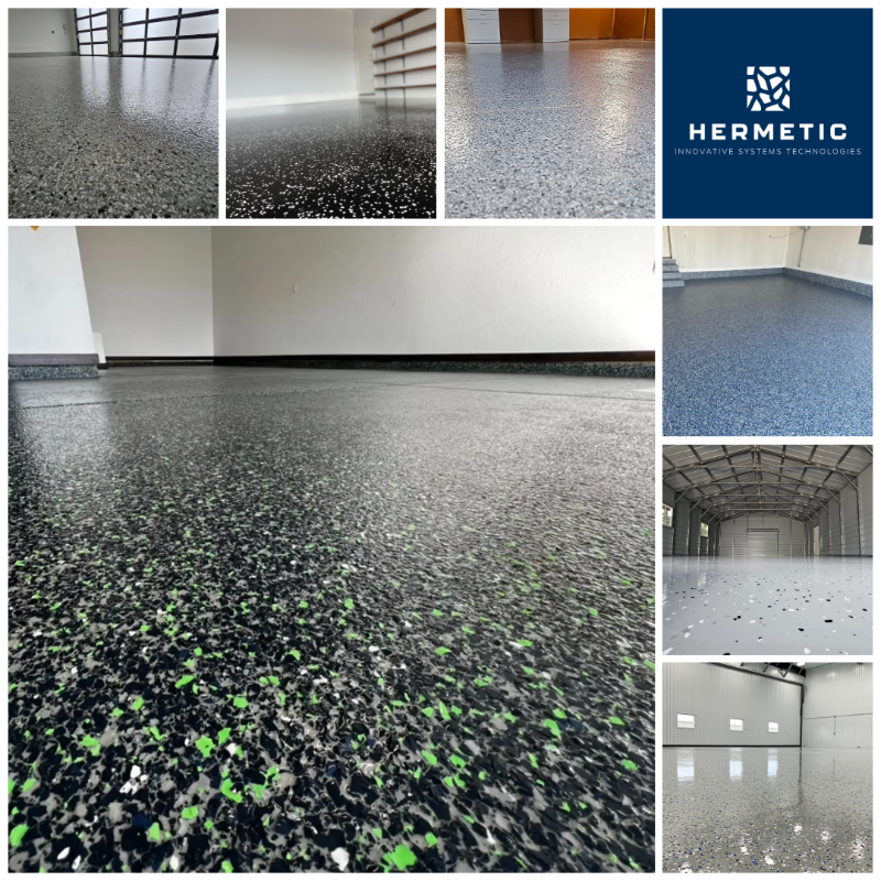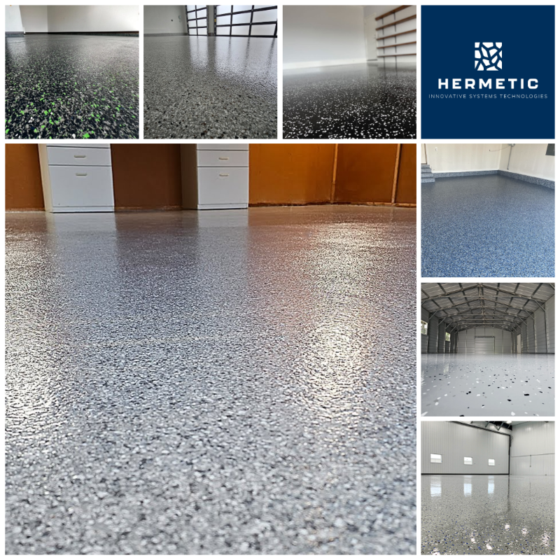 Sistemele profesionale Hermetic pentru pardoseli epoxidice cu fulgi decorativi sunt sisteme multistrat. Așadar sunt caracterizate printr o rezistenta foarte mare, fiind antiderapante.