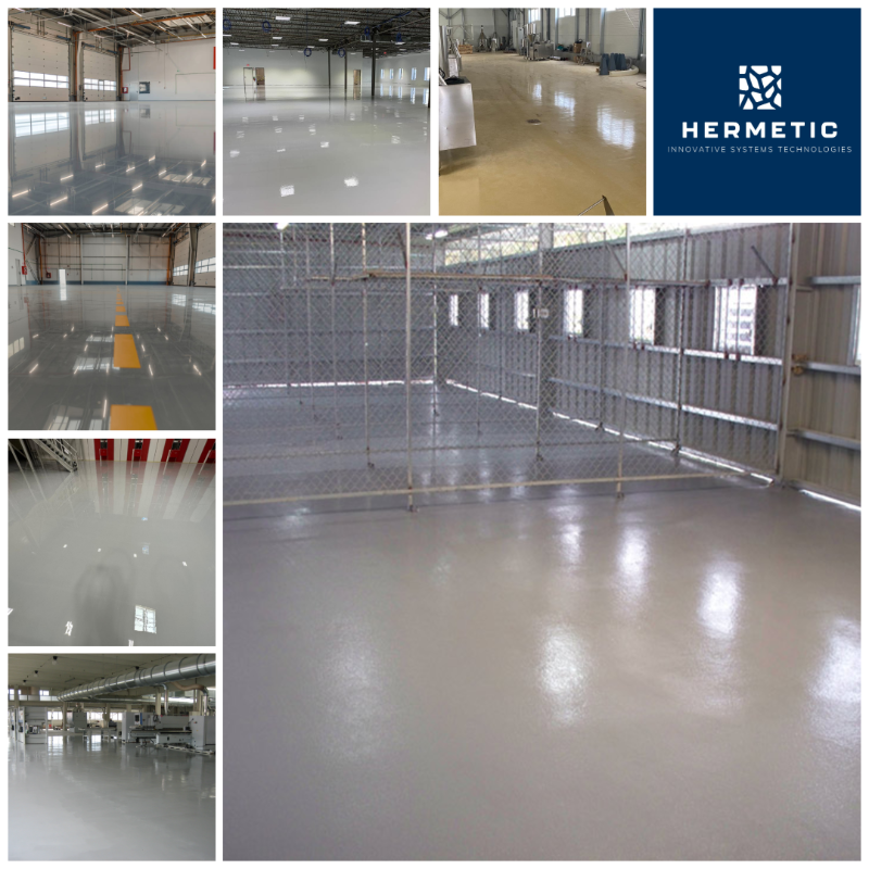 • Hermetic Shield ESL – sistem epoxidic autonivelant, pigmentat conform paletar Ral, suprafata dura, lucios sau mat, la cerere antiderapant